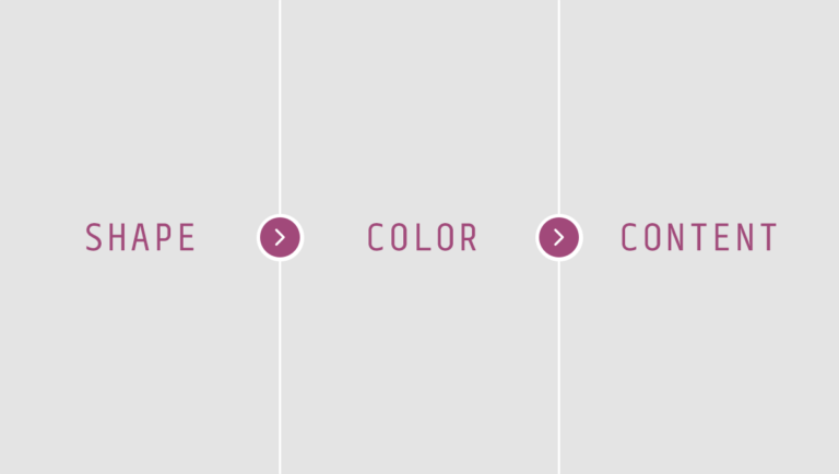 Shape, being the first in the process, can include blank and filled space. We often think first of logo design. However, fonts themselves are shapes that can pack a lot of information before a word is ever read. The fonts you use in your content actually influence your reader. It may seem like such a small detail, but when designing your content and content layout, it’s important to pay attention to it.