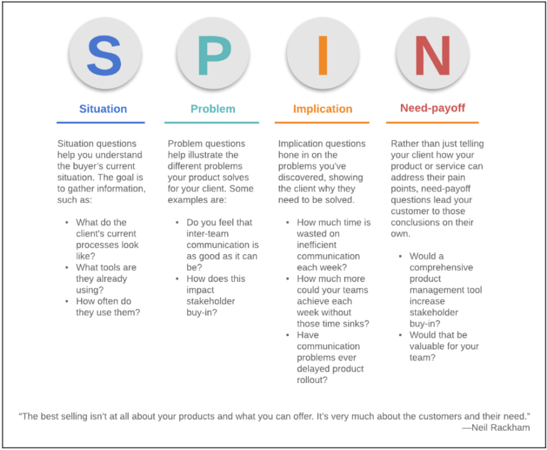Instead, engage in an open dialogue in which your questions assist the customer in identifying pain points. SPIN selling can assist you in understanding the customer’s pain points and resolving their issues.